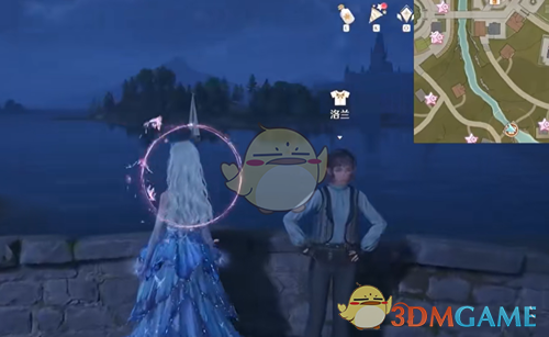 1、打开地图,前往花愿镇找到洛兰NPC进行对话;