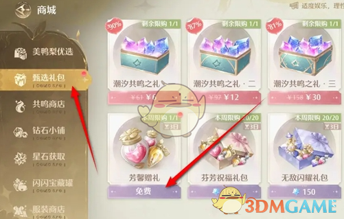 2、打开商城,在左侧的导航栏中点击甄选礼包。