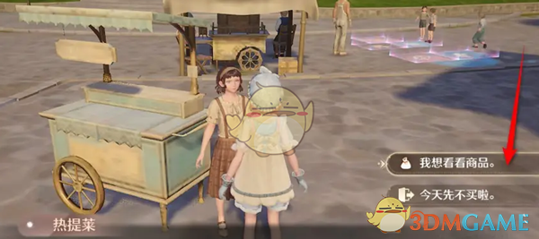 1、首先我们在游戏主页,前往热提菜NPC商店进行对话;