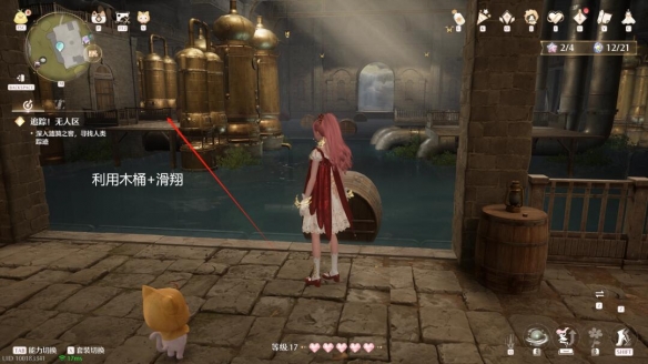 路线②:经过柱子再跳到右侧一排木桶(不建议)。