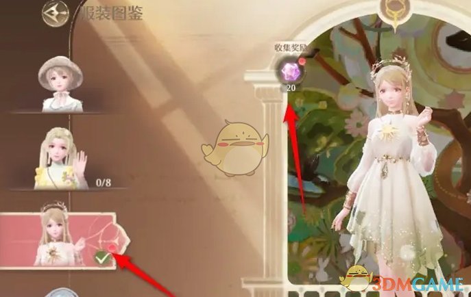 答:在个人页面找到图鉴,点击服装图鉴,选择集齐的套装即可领取奖励。