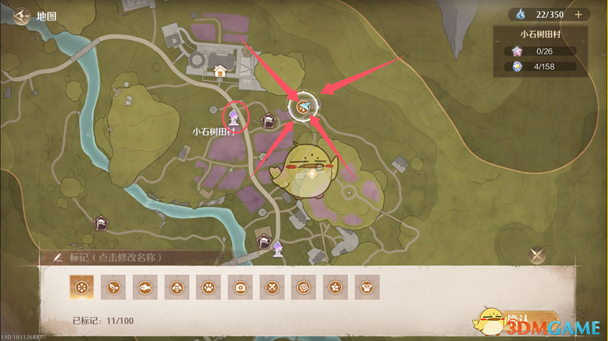 1、首先我们需要打开地图借助流转之柱传送到紫穗草花田随后往箭头标注方向走。