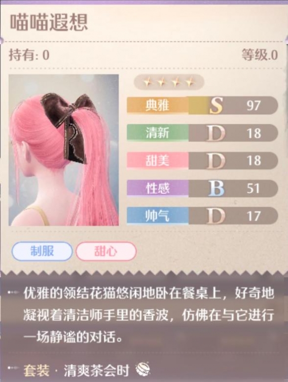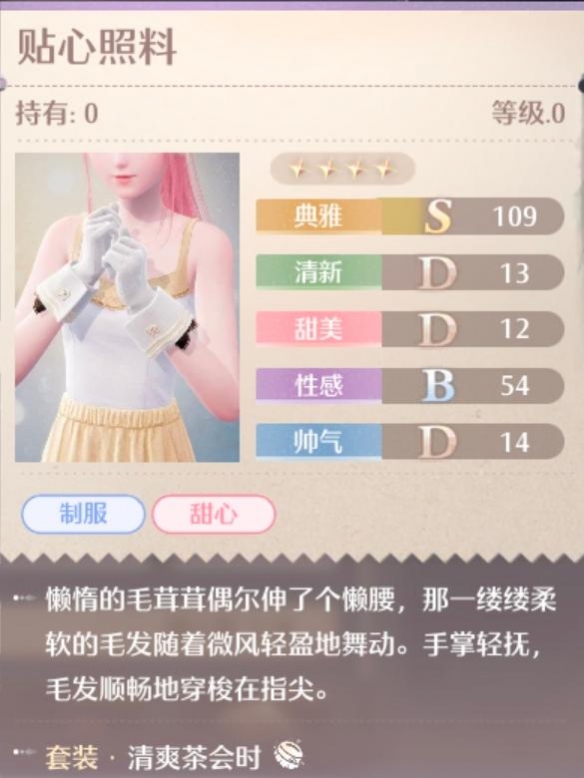 清爽茶会时是《无限暖暖》在12月5日开服之后的常驻池中的四星动物清洁套装,包含制服、甜心词条同时主属性为典雅,那么清爽茶会时的外观是什么样的,有什么加成效果,各个部件又都是什么样的呢?接下来就让我们一起了解一下吧。
