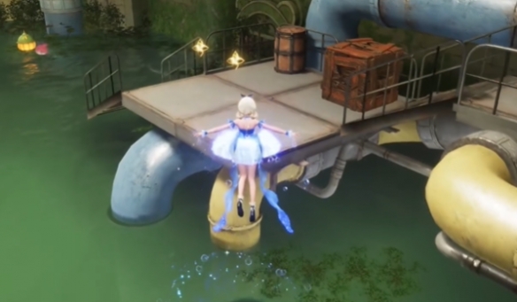 17、从荷叶上跳上去,往右边的管道走,获得第二个奇想星。