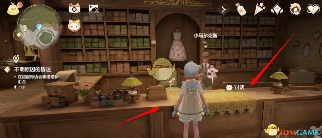 1、进入游戏来到“小马尔克斯”处并点击与之“对话”。