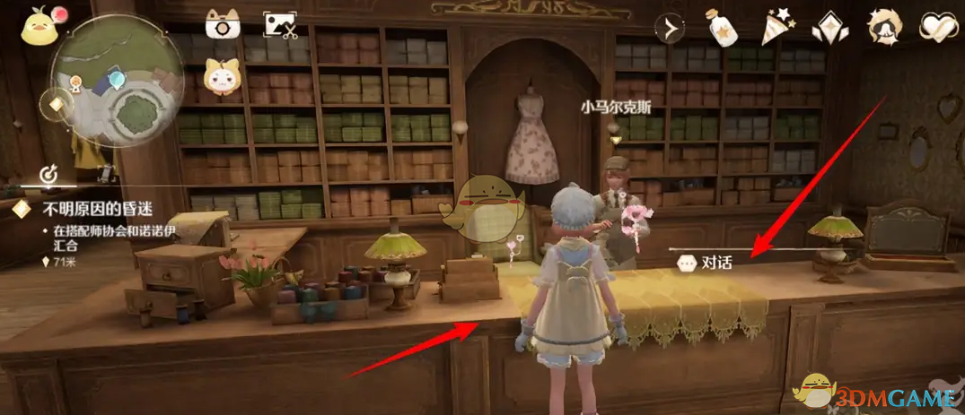 1、进入游戏来到“小马尔克斯”处并点击与之“对话”。