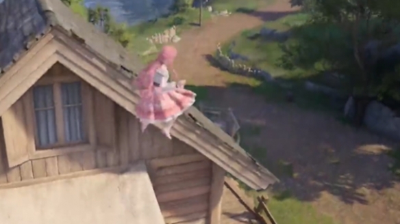 中途拿一下屋顶上的碎片。