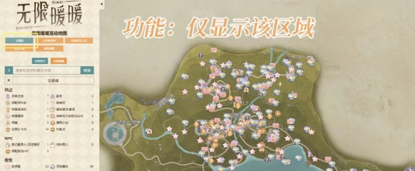 左键点击任意一个按钮,包含“地点”“NPC”“收集”的一级分类,都可以开启/关闭对应的所有点位。