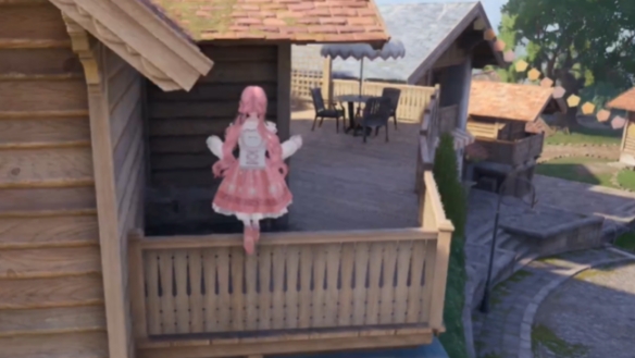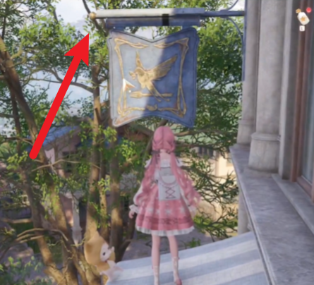 我们先传送到搭配师协会的传送点,然后回头就能看到墙上有个架子,我们需要长按跳键上架子。