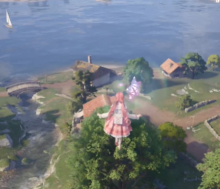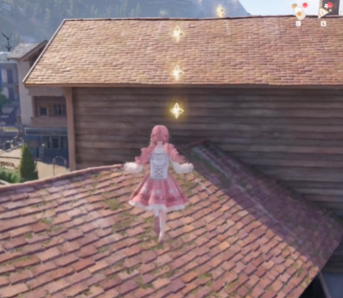 拿到之后视角稍右,就能看到下一颗奇想星,我们直接跳下去到屋子附近。