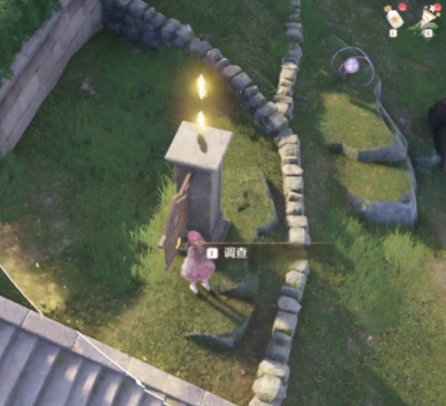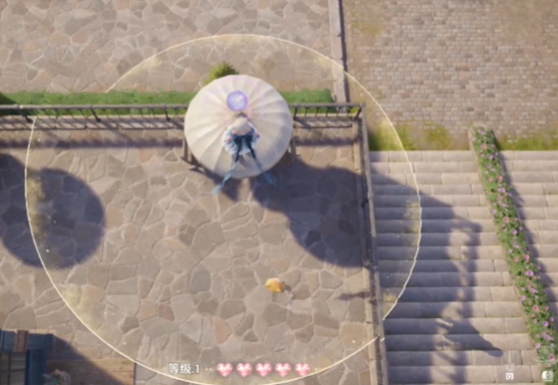 拿到之后,我们向下跳,朝着北边看,就能看到伞上有一颗圆形奇想星。