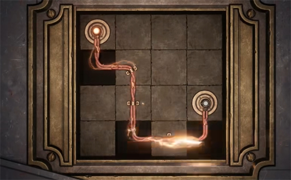 这里有个小游戏,通过旋转把电线连起来就可以了