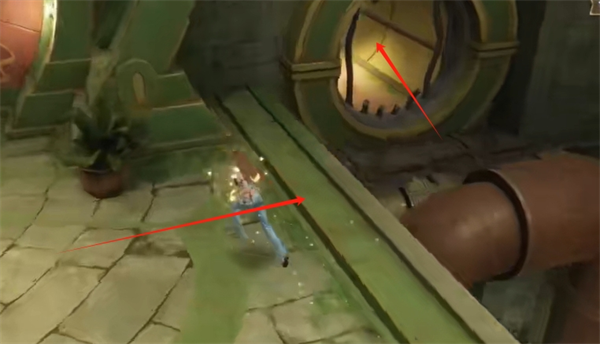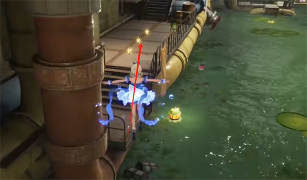 然后拿到奇想星左转会看到管道上有三个灵感露珠