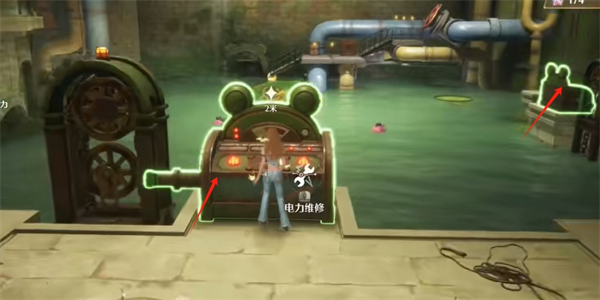 3、切换套装-满电行动,对电箱进行维修,维修好后旁边的通道就会亮起来