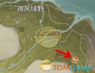 1、位置在图中微风绿野的下方,玩家需前往箭头指向的位置。