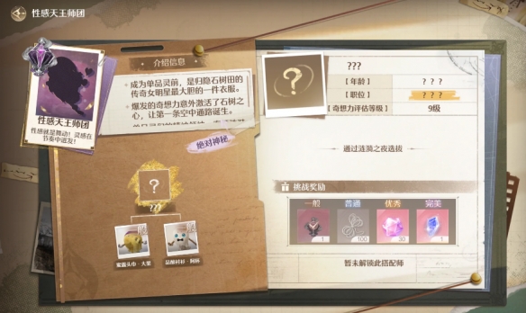 3、三个团长都打过后(分够一般就行),会解锁性感天王的情报。