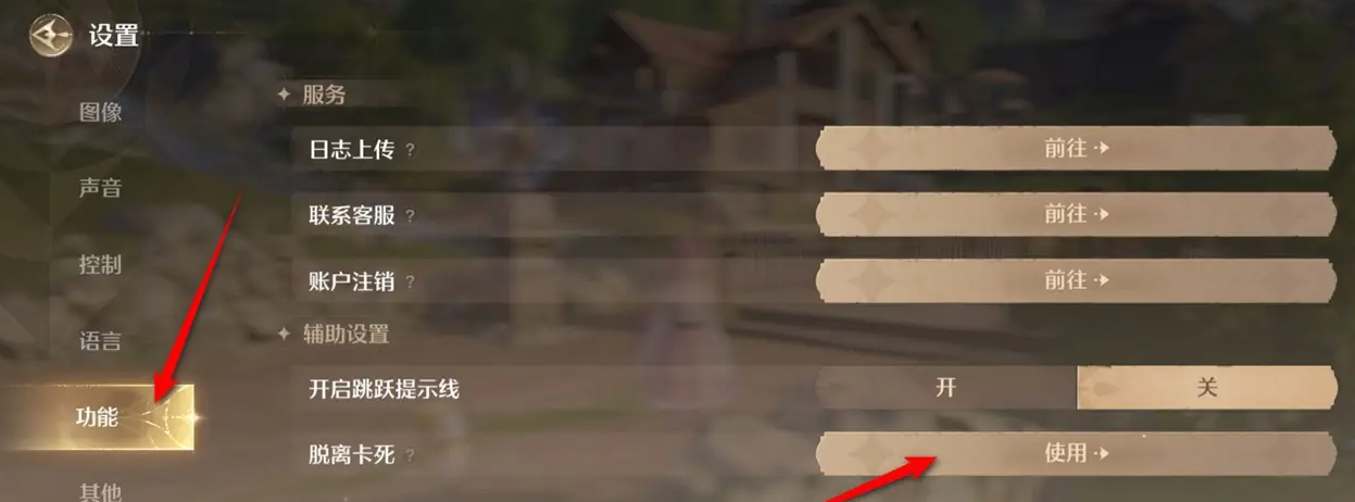 2、点选展开“功能”页面,点击“使用”脱离卡死。