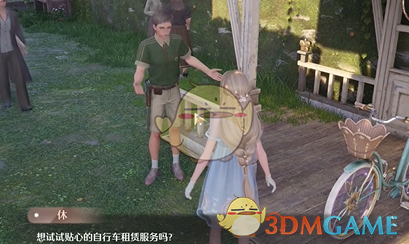 1、跟随任务指引和休进行对话,解锁骑车玩法。