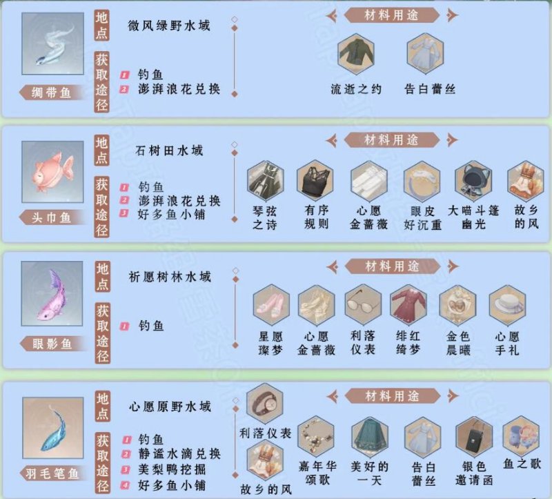 以上就是小编整理带来的无限暖暖钓鱼图鉴一览,更多相关游戏攻略,请关注手游网!