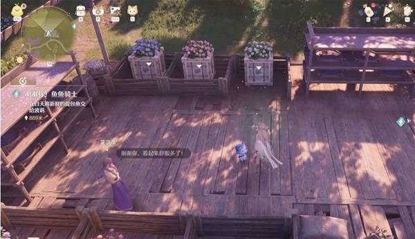 靠近艾洛蒂触发任务,将花箱按秩序摆放,平A推动箱子,三个花箱为一组。例如图所示顺序,每三个按照【蓝、粉、白】顺序摆放好后,与艾洛蒂对话即可完成~