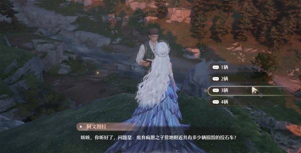 与阿文图拉对话回答问题,答案为【3辆】,此处需要从低处踩叶弹跳上来,到了附近注意观察哦~