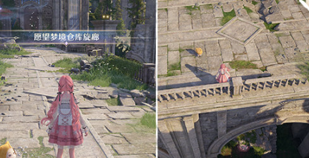 1、首先传送至愿望梦境仓库旋廊,然后找到图中位置,达到桥边后就能看到下方的高级宝箱。