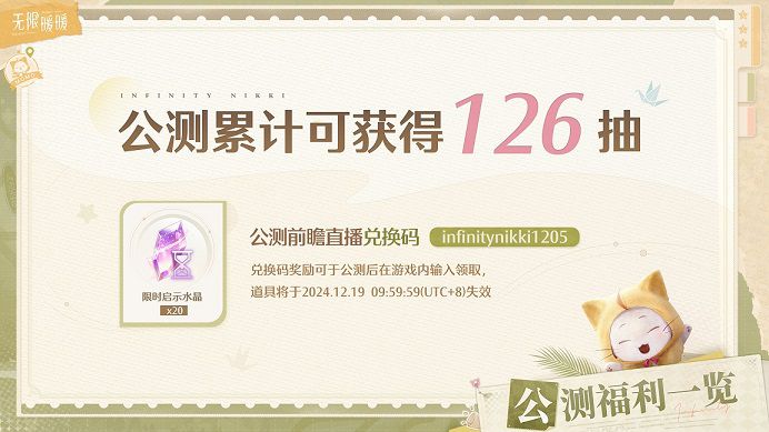 12月5日公测后,搭配师登录游戏领取预约奖励和直播福利,体验相关活动,提升搭配师等级,最高累计可获得126抽。在12月6日暖暖生日当天,搭配师登录游戏即可领取生日套装「星愿璨梦」和拍照动作「惊喜绽放」,还有更多生日福利等待解锁,共计可获得3000+「钻石」和10*「共鸣水晶」。