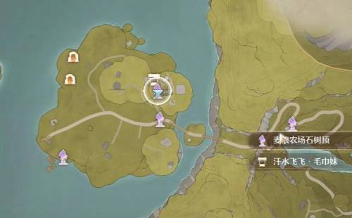 1、启动游戏后,首先查看地图,接着直奔麦浪农场的石树顶端区域。