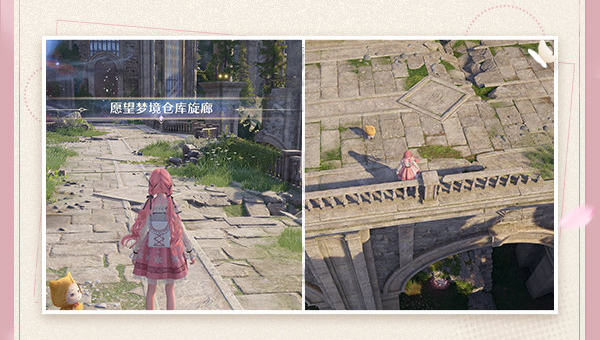 1、先通过流转之柱进行传送,来到愿望梦境仓库玄廊这里。
