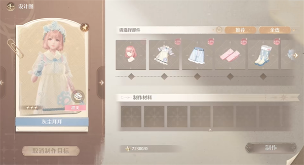 2、使用奇想星去解锁灰尘拜拜套装,消耗一定材料就可以制作衣服了。