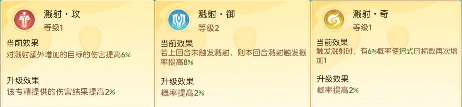 2、溅射·御:上回合未触发溅射,本回合溅射触发概率提高12%。玄学问题,可以考虑。