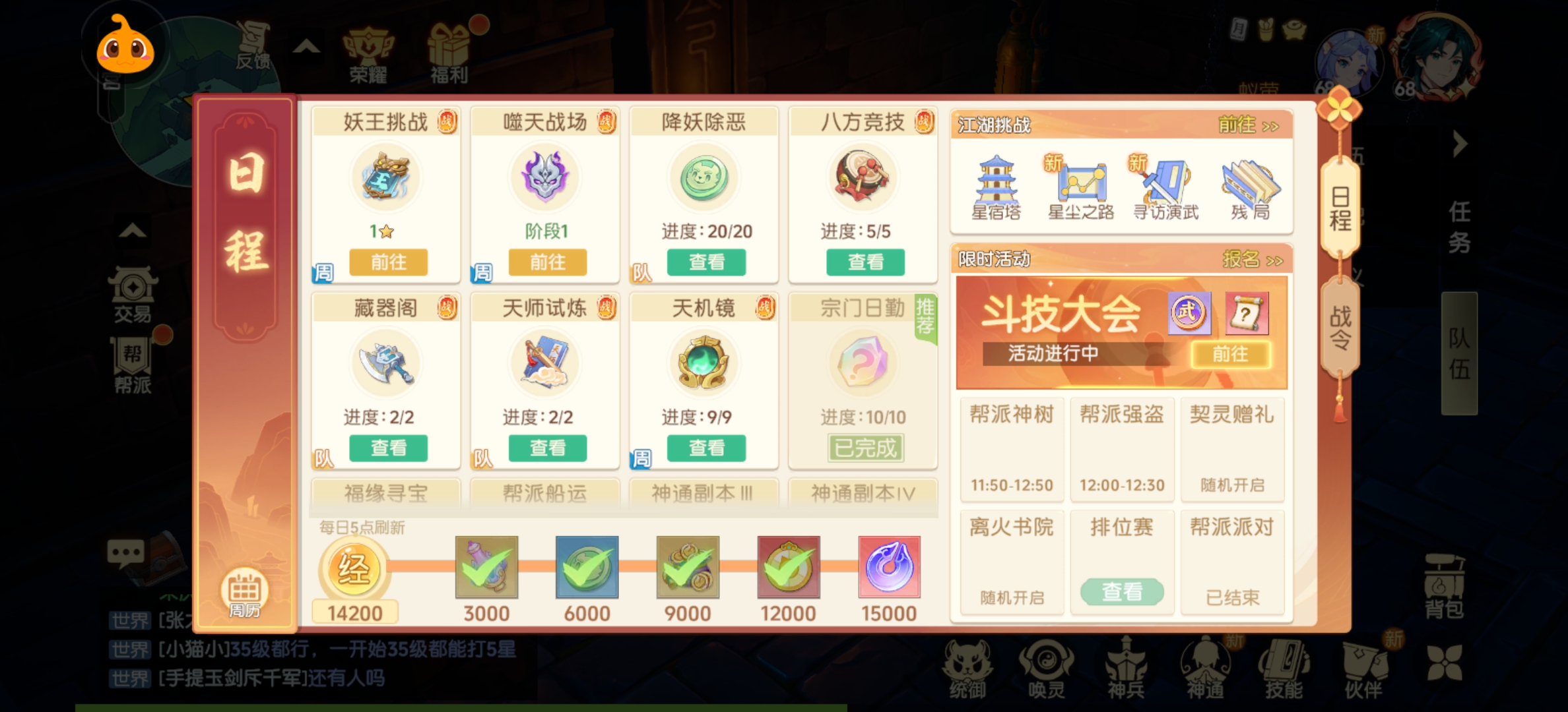 1、挑战积分主要通过妖王、战场、八方竞技、臧器阁、天师试炼、天机镜等日常活动获取。