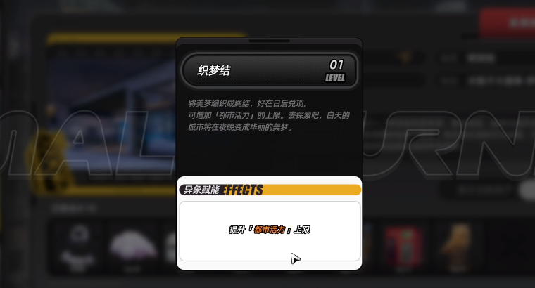 另外购买公寓之后,玩家还可以获得织梦结,在探索游戏的过程中会消耗大量活力值,通过增加自身的都市活力上限,玩家可以增加探索时间,后期成为店铺的店长之后,玩家要维持店铺经营,甚至还会有线上订单需要送货,每次操作也都会消耗活力值,假如没有织梦结,那玩家在除了经营之外,就没有过多的实力参与游戏,其他房产绑定的异象家具,都会有所不同,玩家可以多去获得收益,争取可以购买下所有公寓。