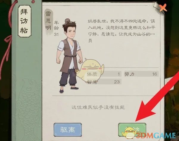 4、如果来拜访的人能力不是特别好,可以点击左侧的驱赶;
