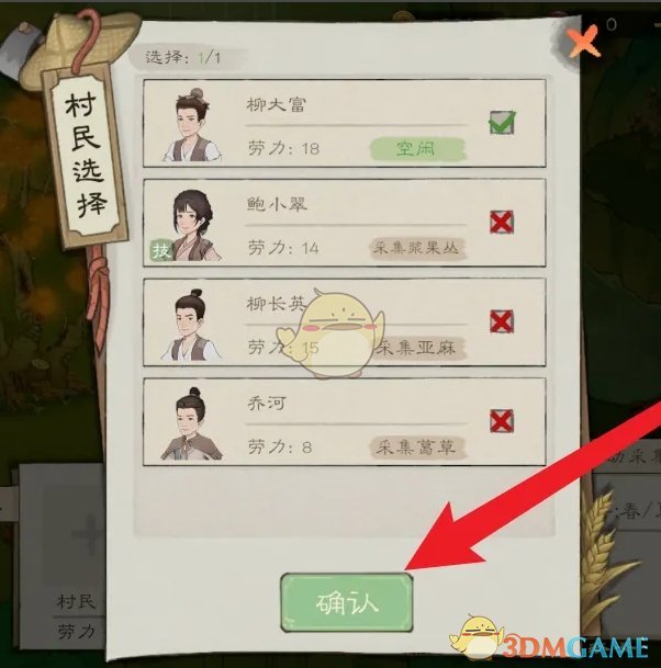 3、选择正在空闲的农民,点击确认即可采集竹子;