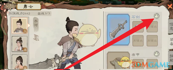 2、在勇士详情页,点击右侧菜单栏的装备选项;