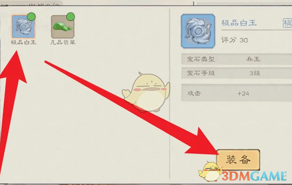4、最后我们选择极品白玉,点击右下角的装备即可。