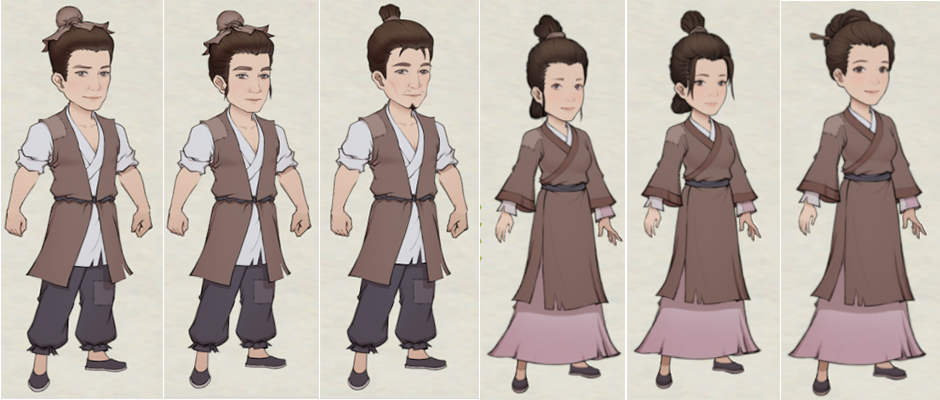 1、村民是山谷里的主要劳动力,有生老病死的设定,根据年龄分为7个年龄段:孩童,少年,青年,壮年,中年,老年,古稀。