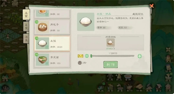 (2)食物:水稻,白菜,萝卜,冬瓜食物产量大,制作的食物前中期加的寿命和饱食度相对够用。冬瓜可一次性种植30块地基本够用,南瓜种六块地足够