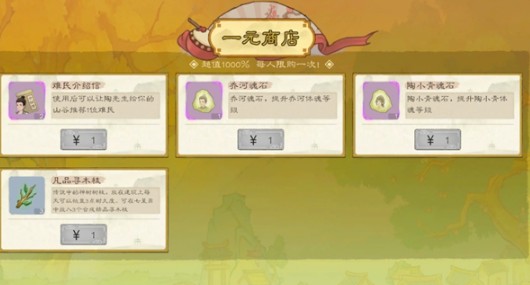 一元商店可购买部分勇者的魂石,永久限购一次。