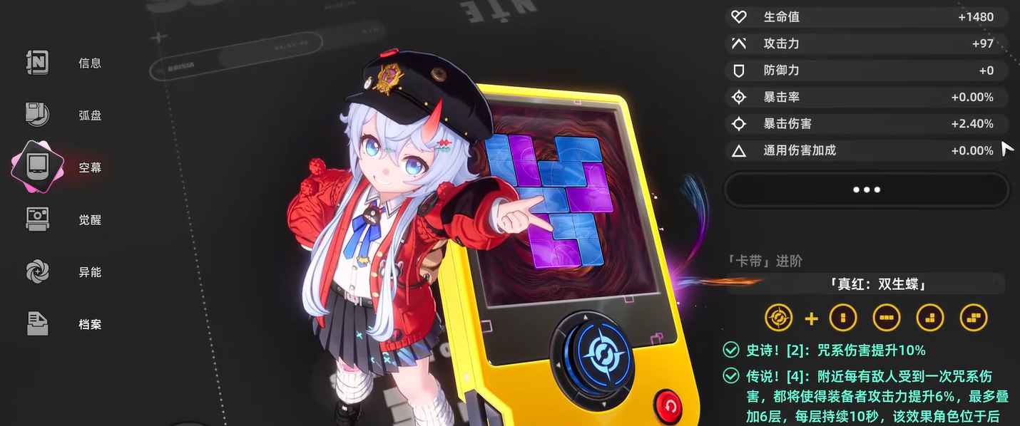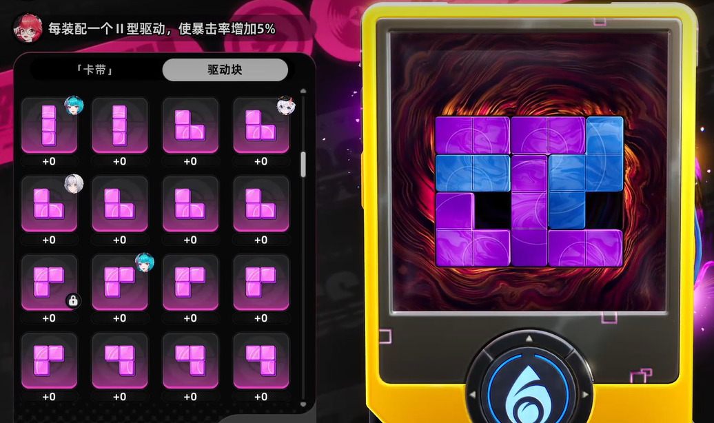 空幕系统的解锁方式有点像俄罗斯方块,驱动块的摆放位置没有固定的要求,玩家可以按自己的需要来调整布局。拿到的驱动块越多,能够搭配出来的空幕方案也就越丰富,角色的培养方向也能更加灵活一些。所以说胡萝卜币虽然看起来不起眼,但是在角色养成这条路上确实挺重要的,攒够了数量就可以多刷几次倒带,尽量把有用的驱动块都收集齐全。