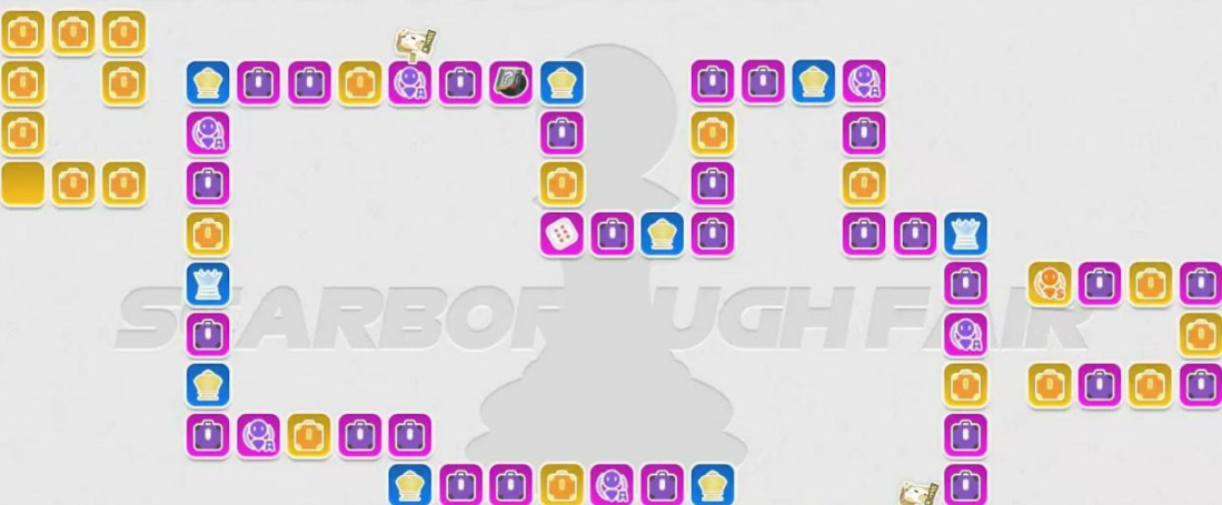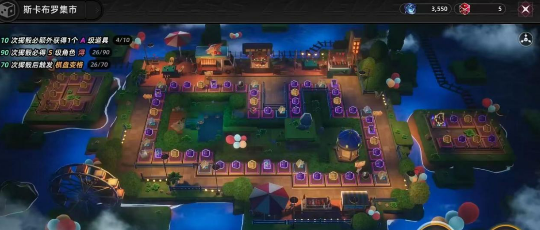 斯卡布罗集市的玩法其实不复杂,玩家花费资源投掷骰子,然后棋子就在棋盘上移动。棋盘上有不同类型的格子,走到角色格就直接拿到对应的角色,走到宝箱格的话,会随机开出角色或者武器。这种玩法,跟以前那种点十连就看结果的方式,完全不一样,多了点探索的感觉,每次掷骰子都不知道会走到哪个格子,有时候运气好,直接踩到想要的角色格,有时候得多走几步。