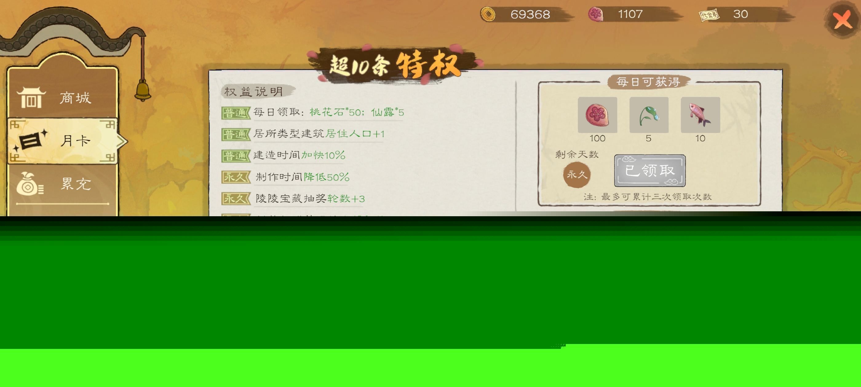 这想玩困难模式这个是必买的,会给你加一堆的权益,还有每日送桃花石,以及限购礼包,性价比超高