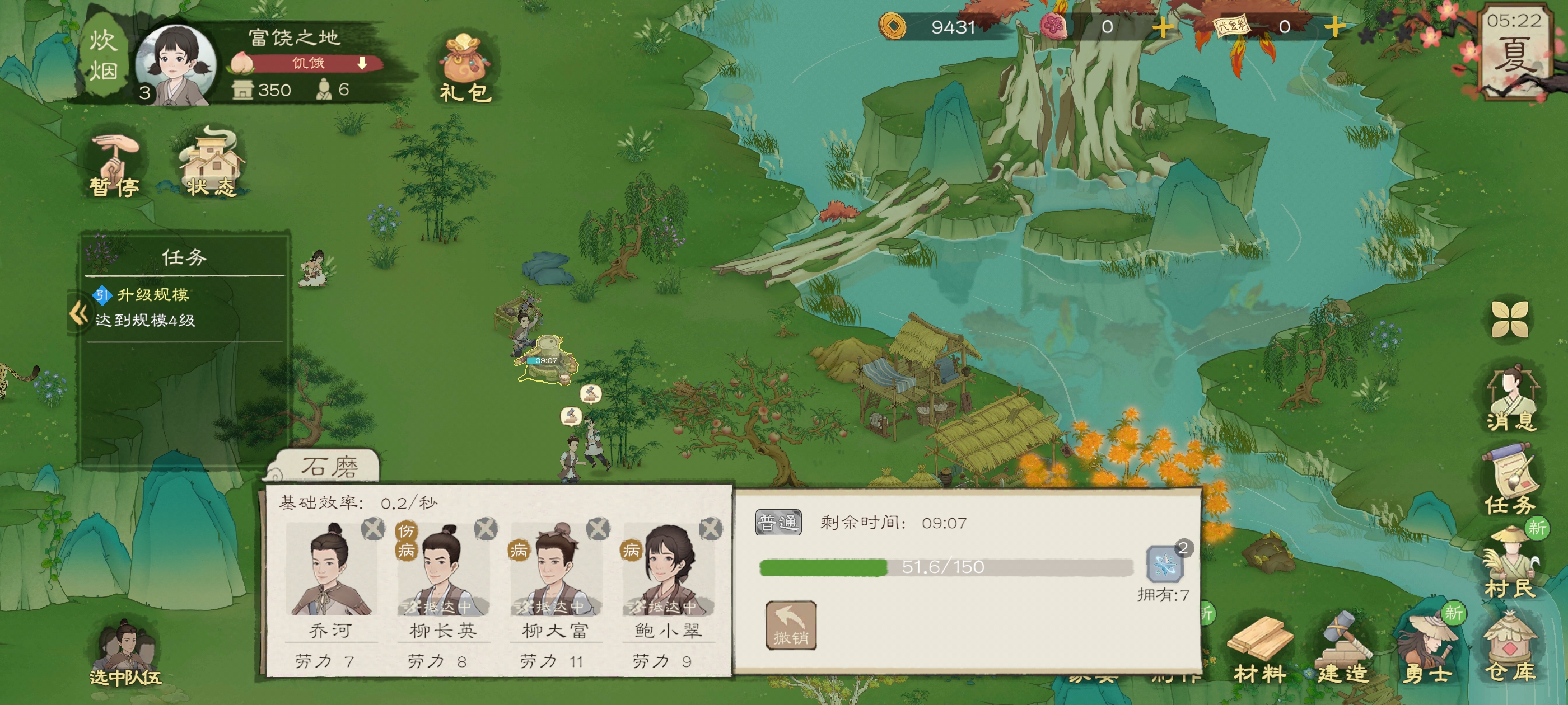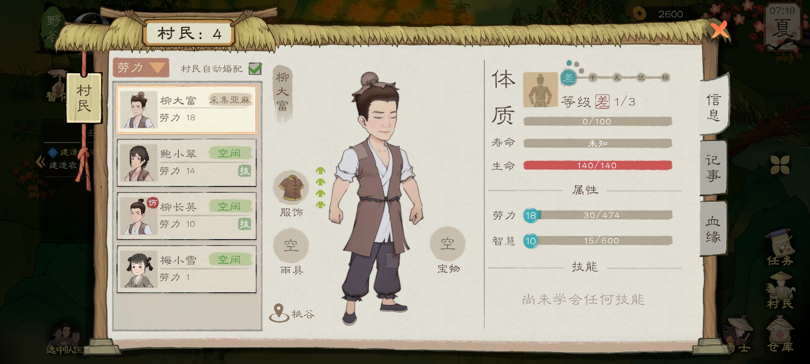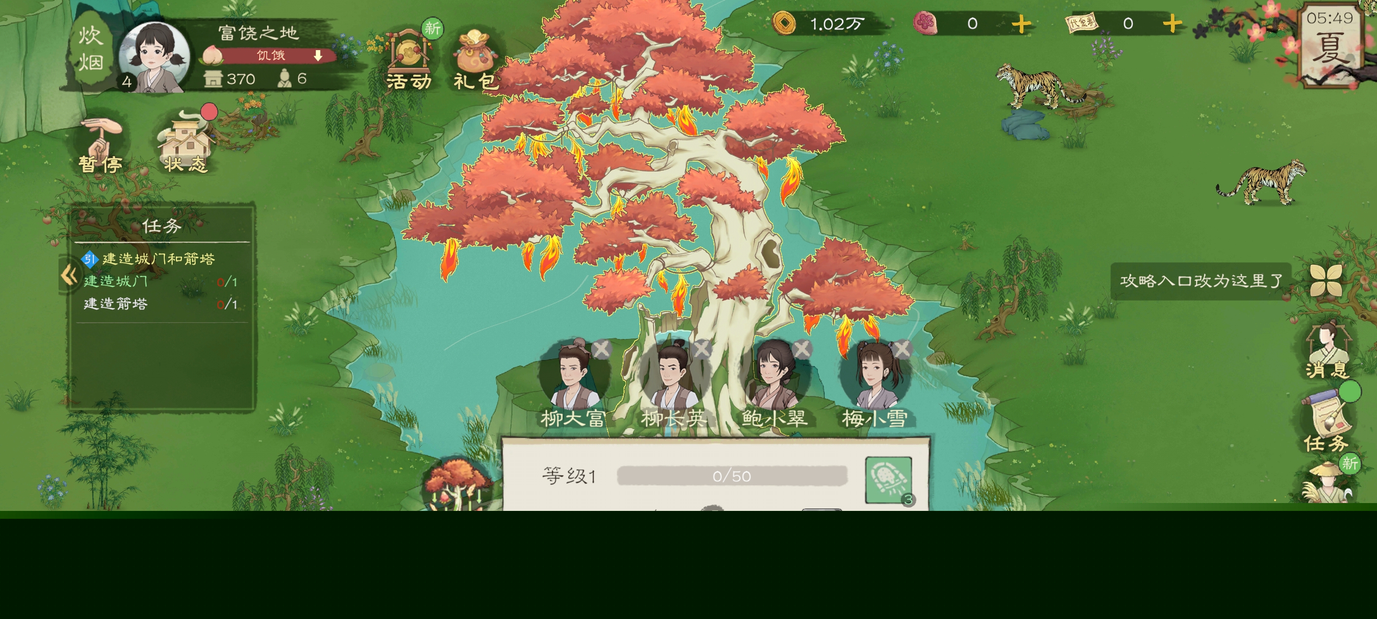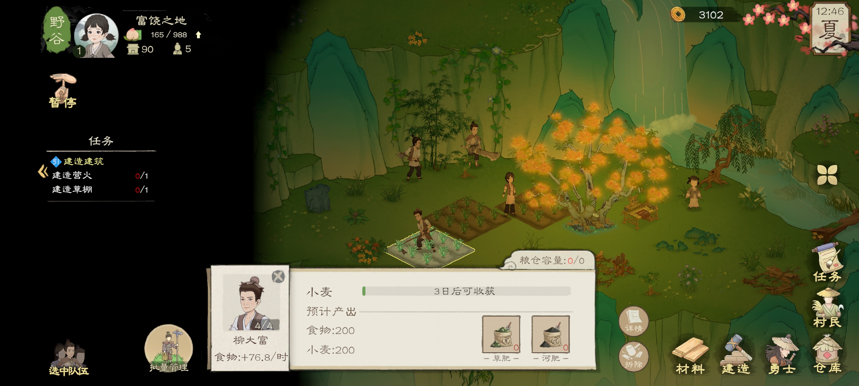 前期食物却必须种田,一个人可以管理四块地,开局直接用柳大富种就行了