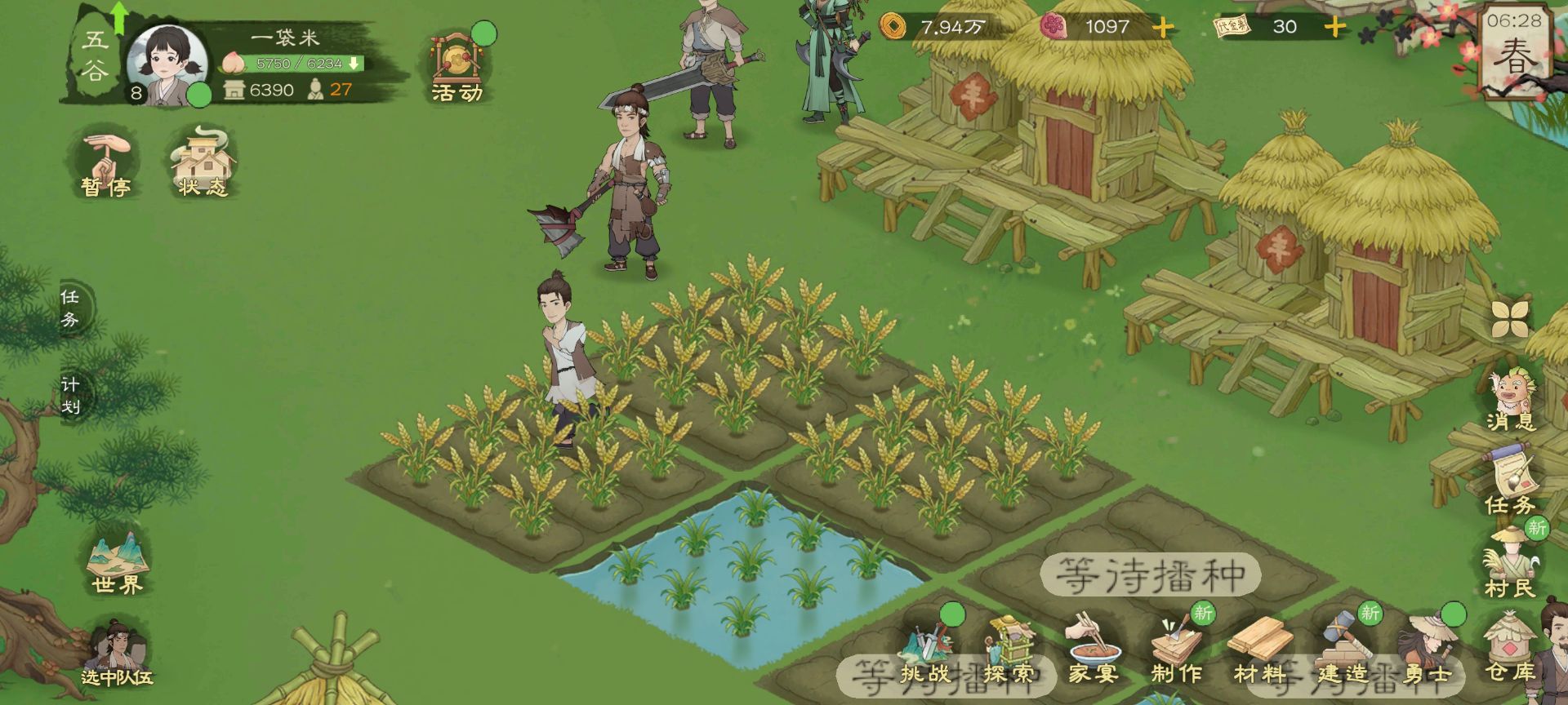 ps,一口气种别太多了,因为前期人数这几个,大多数还是要以采集物资为主,所以种四块田完全够了