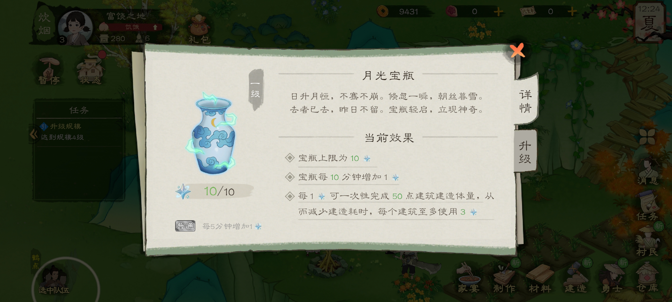 在前期四个人物一起建,再加上这三滴月光水(一口气最多用三滴)建造时间基本都能保持在三分钟内!!!
