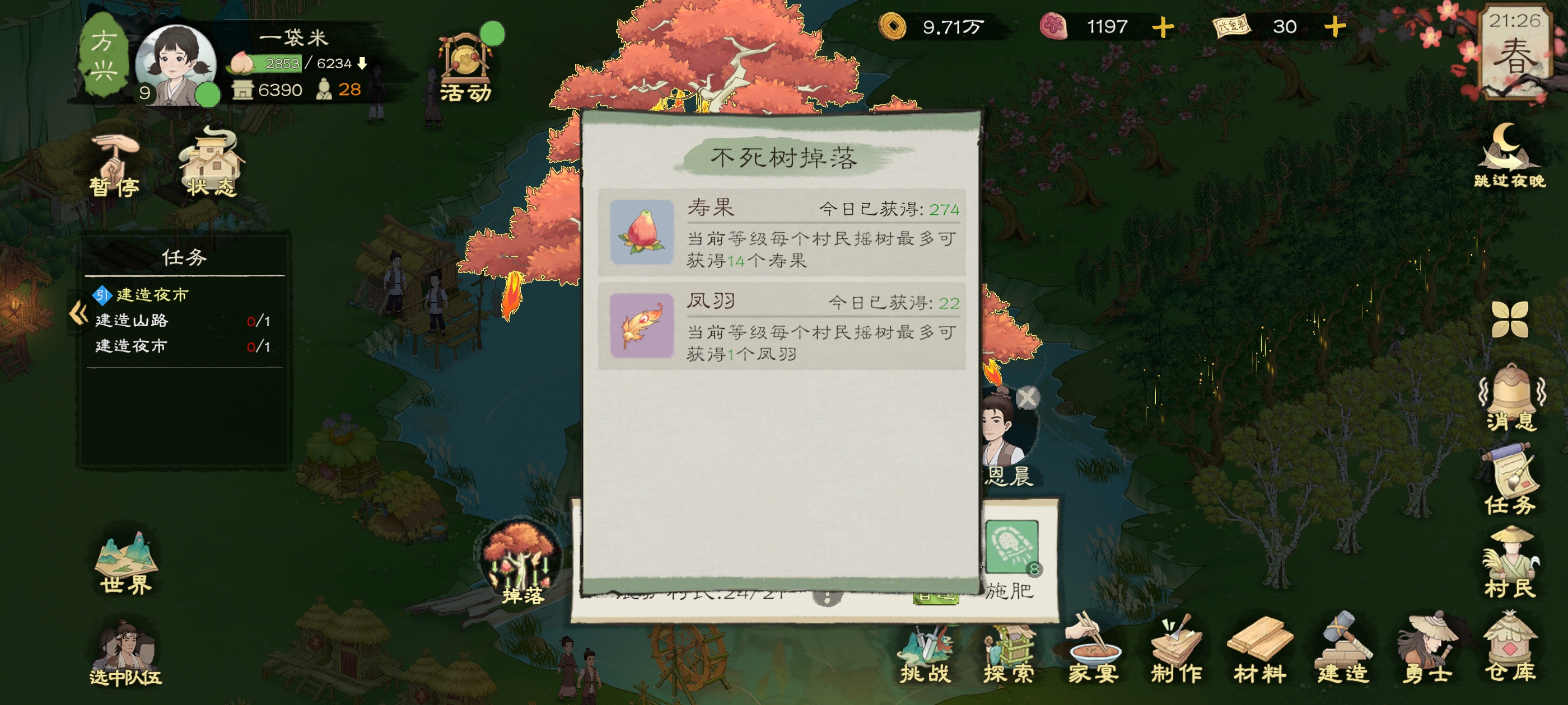 寿果成熟的时候,就会有怪物开始来攻击你的村庄哦,不死树也有几率掉落那个凤凰羽毛,拿着后面可以卖钱,一个羽毛1000块