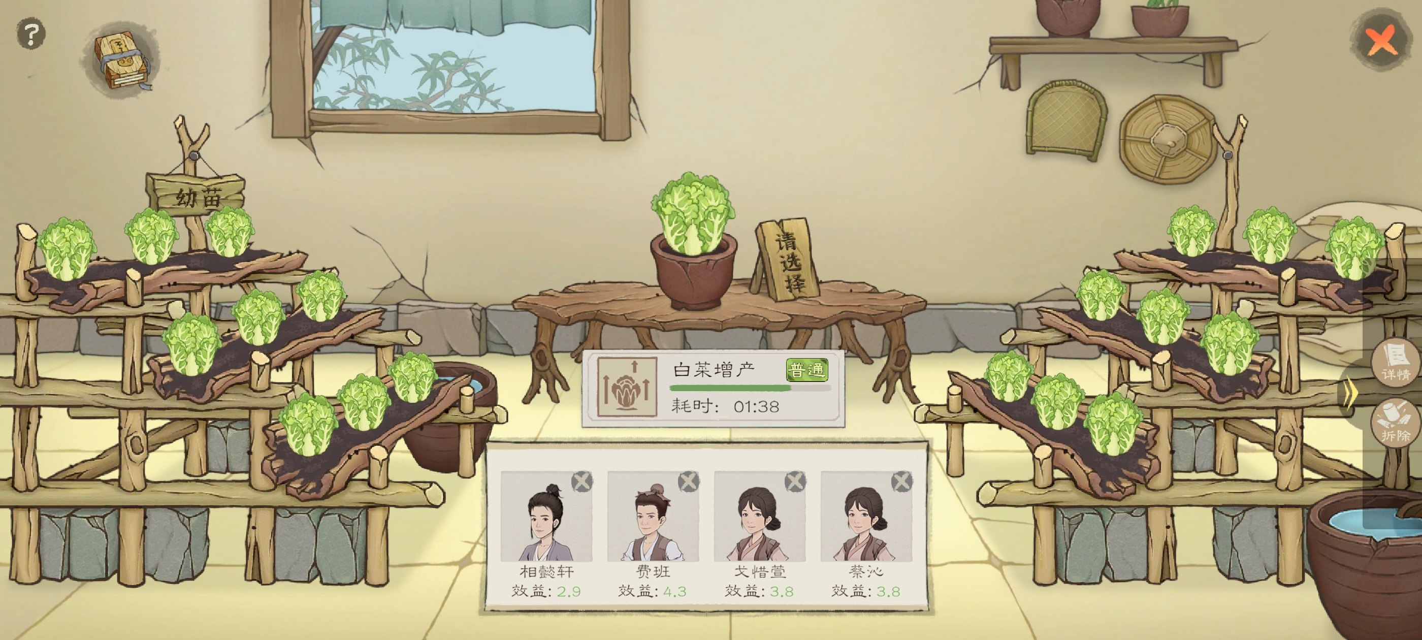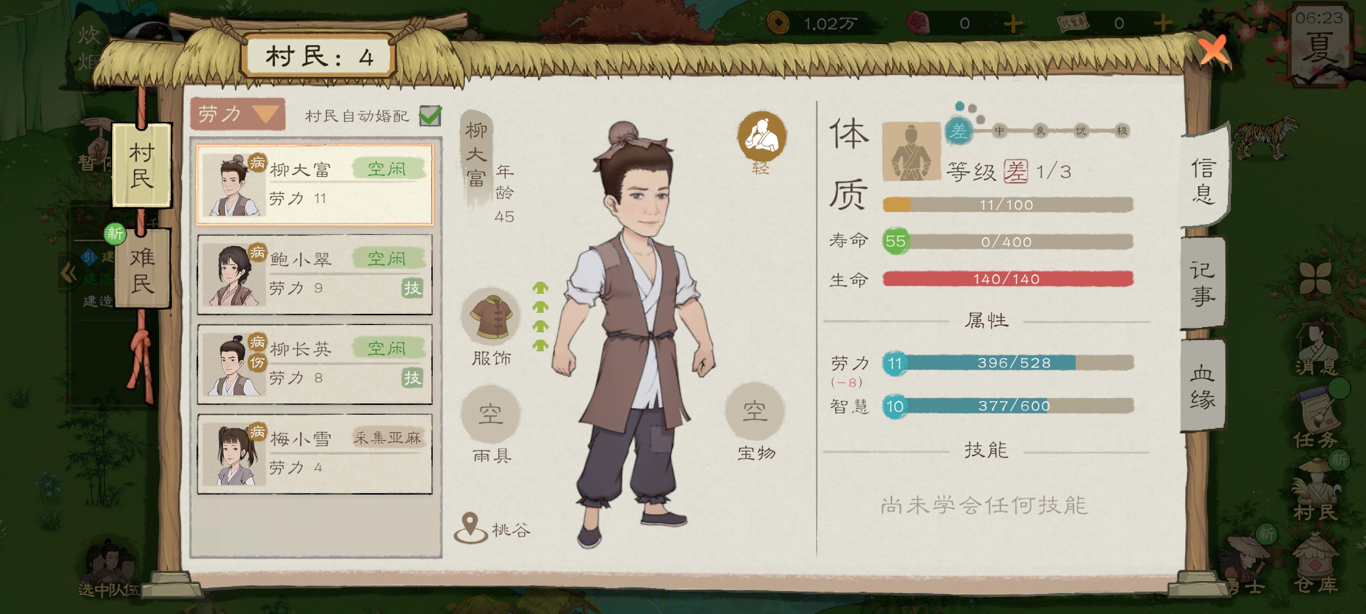 柳长英的技能是砍树,所以就专门让他砍树,来获取资源