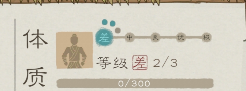 体质分为差中良优极,体质差的就更容易生病,感染的也更严重,像我上张图片是个小孩,所以体质差是正常的,如果体质高的话,就不容易生病,而且干活也会更快