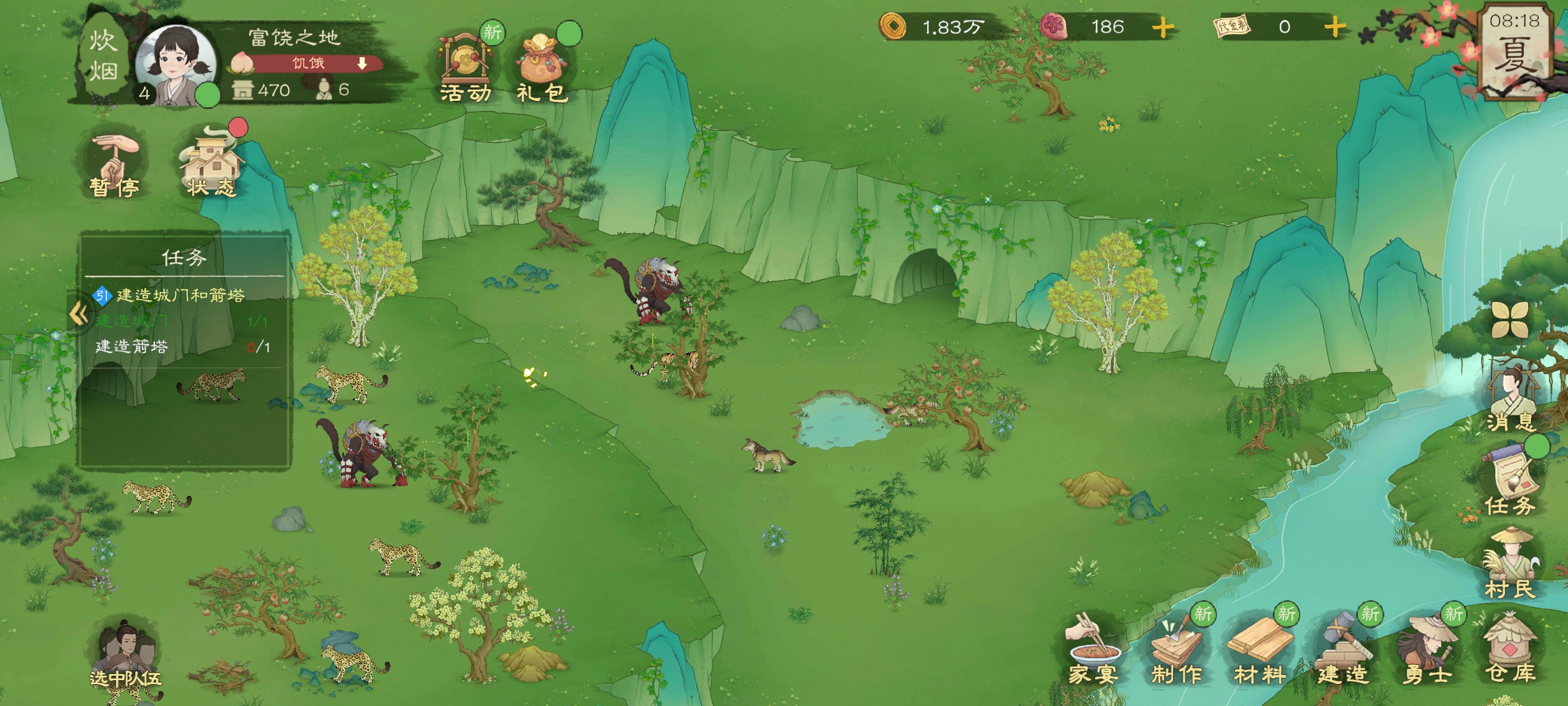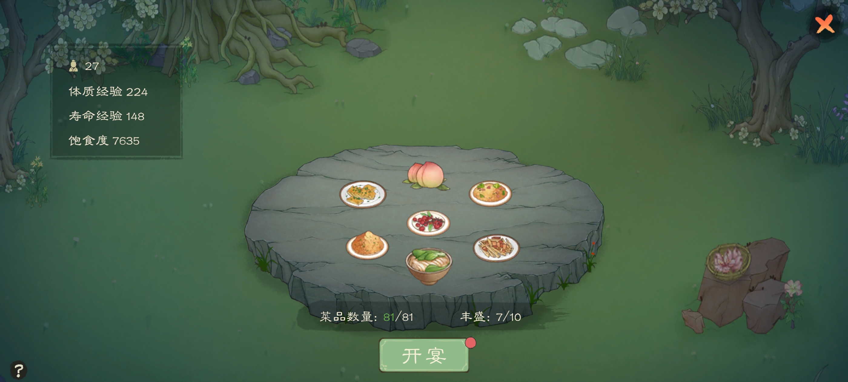 开局大致思路就这样,食物尽量选择野菜面,剩下的浆果什么的因为食物稀少直接放上家宴
